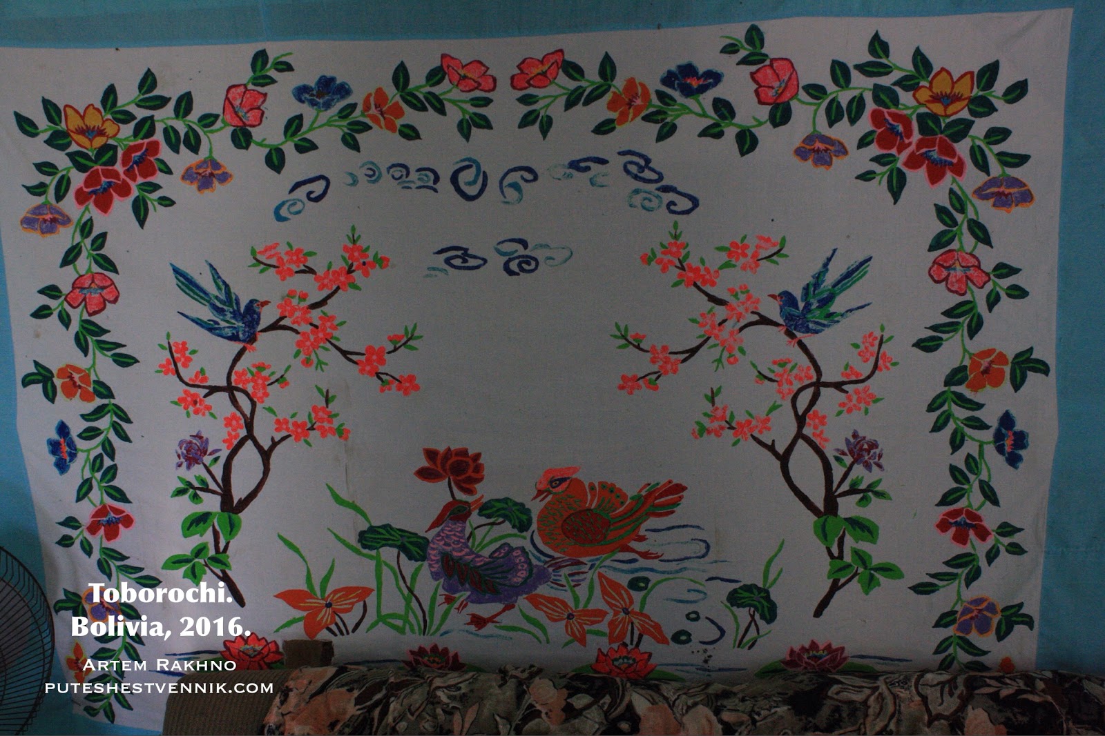 Ужином накормили очень сытным. Из еды на столе появилось следующее: рис и фасоль, несколько початков вареной кукурузы, яйца, компот из какой-то ягоды. Каждый раз, на завтрак, ужин и обед в Тоборочи меня угощали огромными порциями пищи. Гостеприимство староверов велико. Однако стол возле красного угла накрывали специально для меня, и ел за ним я один. Возможно, потому, что у староверов не принято есть за столом с кем-либо из посторонних. Я знал о таких особенностях культуры старообрядцев и поэтому не удивлялся. Обедал и ужинал один, но при этом в комнате мог кто-нибудь присутствовать и даже разговаривать со мной. Впервые о настороженном отношении староверов к приезжим я прочитал в книге Арсеньева «Дерсу Узала», где исследователь описывает случай, когда жители одной таежной деревни на Дальнем Востоке не захотели даже отворять ему дверь и общаться с ним. Такое поведение могло быть обусловлено не только опасениями вредных влияний чужаков на религиозное мировоззрение общины или страха каких-то новых гонений со стороны государства, но и попыткой воспрепятствовать возможному распространению болезней, которые иногда приносили с собой путешественники. Так или иначе наличие этого противопоставления «свои-чужие» в культуре старообрядцев сохранилось и, возможно, даже усилилось вдали от России, среди других народов. Старообрядцы в Тоборочи говорили о том, что когда кто-либо из них покидает деревню на много дней(поездки на короткий срок в боливийскую деревню Чанэ случаются ежедневно), то, возвратившись обратно, такой человек некоторое время должен жить отдельно от всех, с целью «очиститься». Браки с представителями других национальностей не запрещены, однако большой популярностью не пользуются. Но за примером далеко ходить не надо: Самон и Тарас — дети от смешанного брака русского и боливийки. Внутри деревни сложно найти себе пару, так как численность населения — всего около ста жителей. Для сватовства приходится контактировать со староверами других стран — Бразилии, Аргентины, США. В Боливии есть еще старообрядческие деревни, но численность в них меньше. Эти деревни носят названия Пироги(ударение на второй слог) и Сан-Хулиан, и я пока в них не был, однако в этот вечер в гости к деду Степану и его семье приехал на джипе один житель деревни Пироги(примерно в 100 км от Тоборочи). Когда я заходил в дом за водой, то встретил этого мужика с длинной бородой у крыльца. Первые его слова при виде меня: